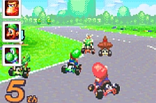 Choose from 8 characters and 4 modes of play including the Grand Prix where you race across 20 tracks in 5 cups.
